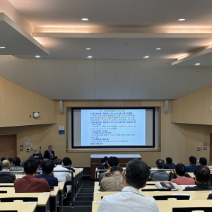 医学部教育支援センター長(本学教員)より、医学部の分野別評価の進捗状況等の概要説明を行った後、講師より、JACMEとしての一巡目評価のまとめ、直近の動向や評価基準の変更検討状況等について詳細にご講演いただきました。本学での二巡目受審(2030年受審予定)に向けた知見を得る有意義な機会となりました。教職員合わせて98名が参加し、質疑応答も活発に行われ、大変充実した内容となりました。